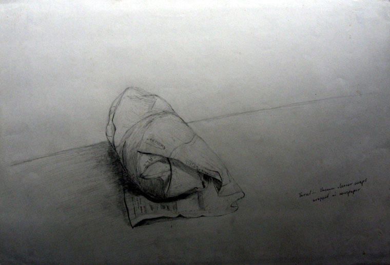 Parcel - vacuum cleaner scraps wrapped in newspaper